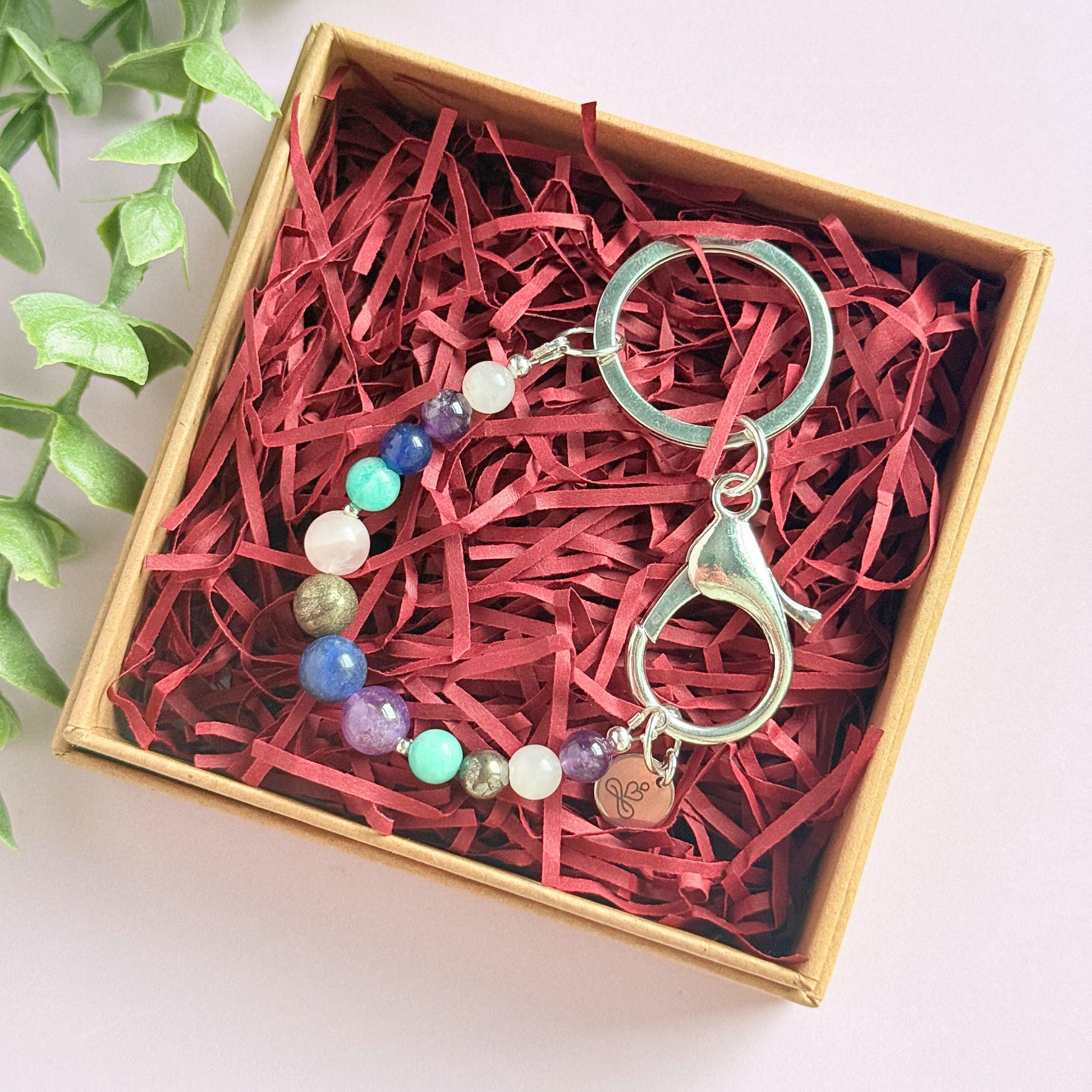 Anxiety Relief 4-4-4 breath work beads. Crystal box breathing keyring