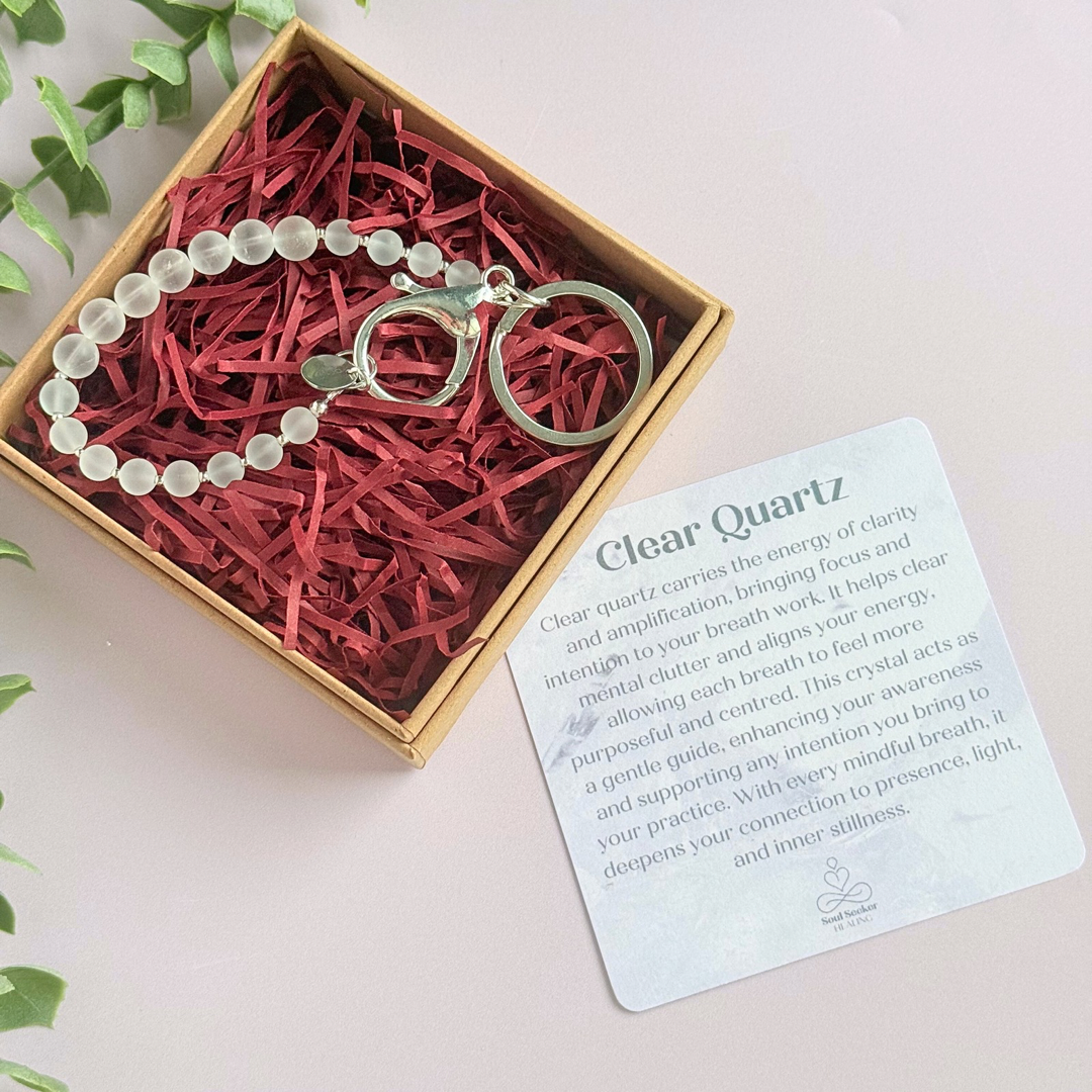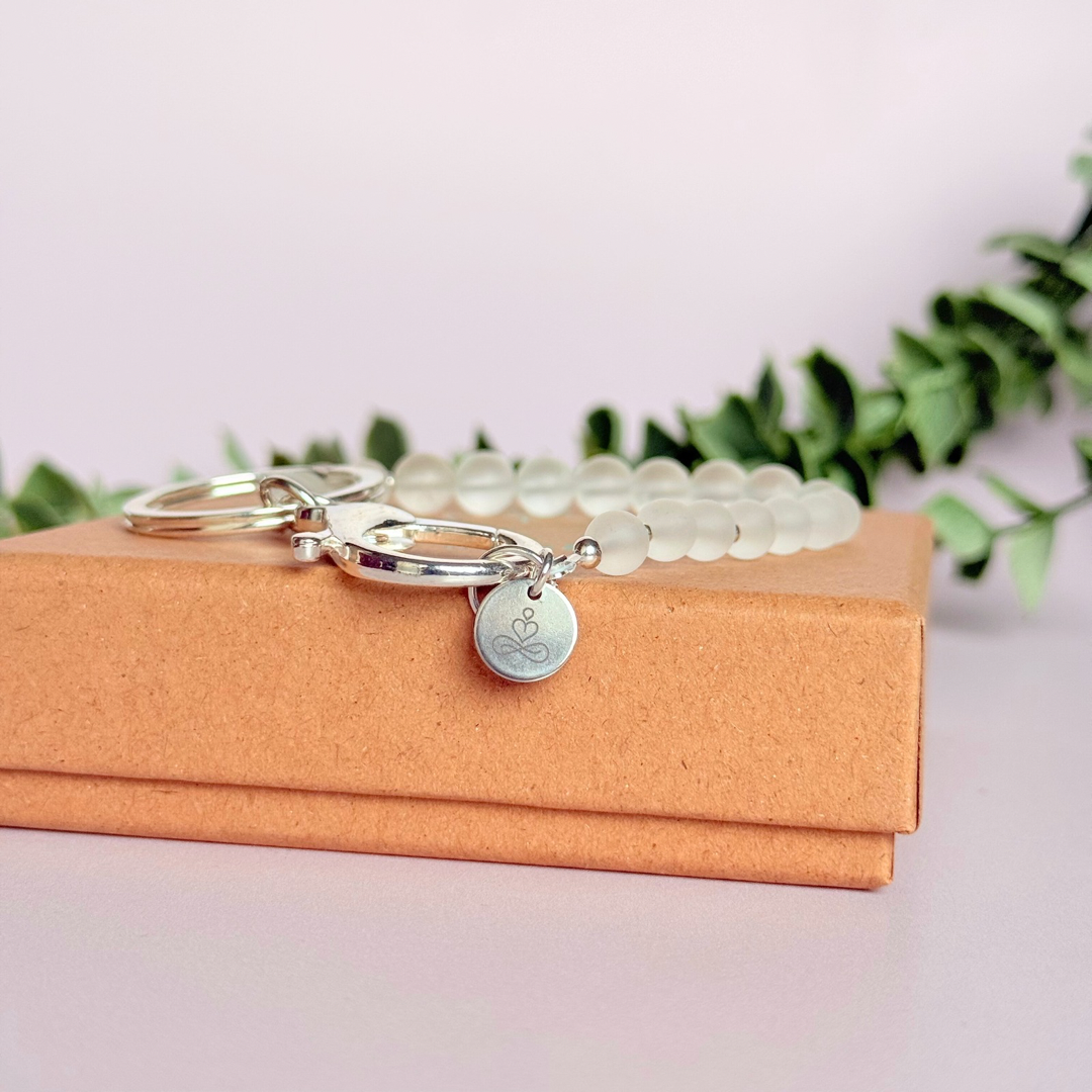 Clear Quartz 4-7-8 breath work beads. Crystal breathing keyring