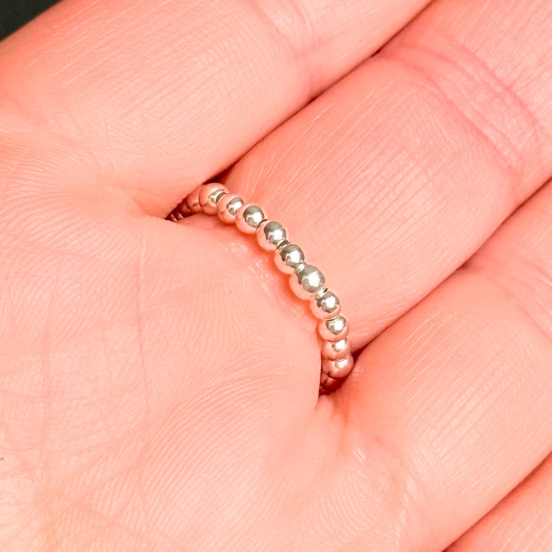 Strung on strong jewellers elastic and knotted securely to create a flexible yet durable elasticated band. This ensures a comfortable fit for a range of finger sizes, making this ring versatile and easy to wear.