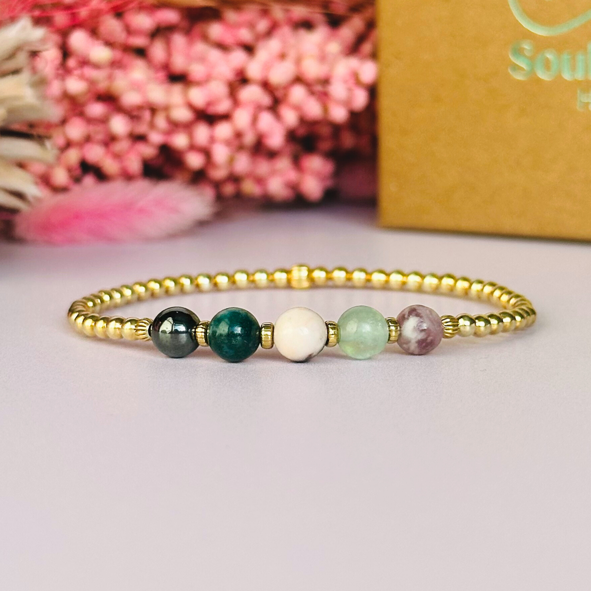 This gold vermeil focus bracelet is made with a selection of five healing crystals all believed to help you stay focused.