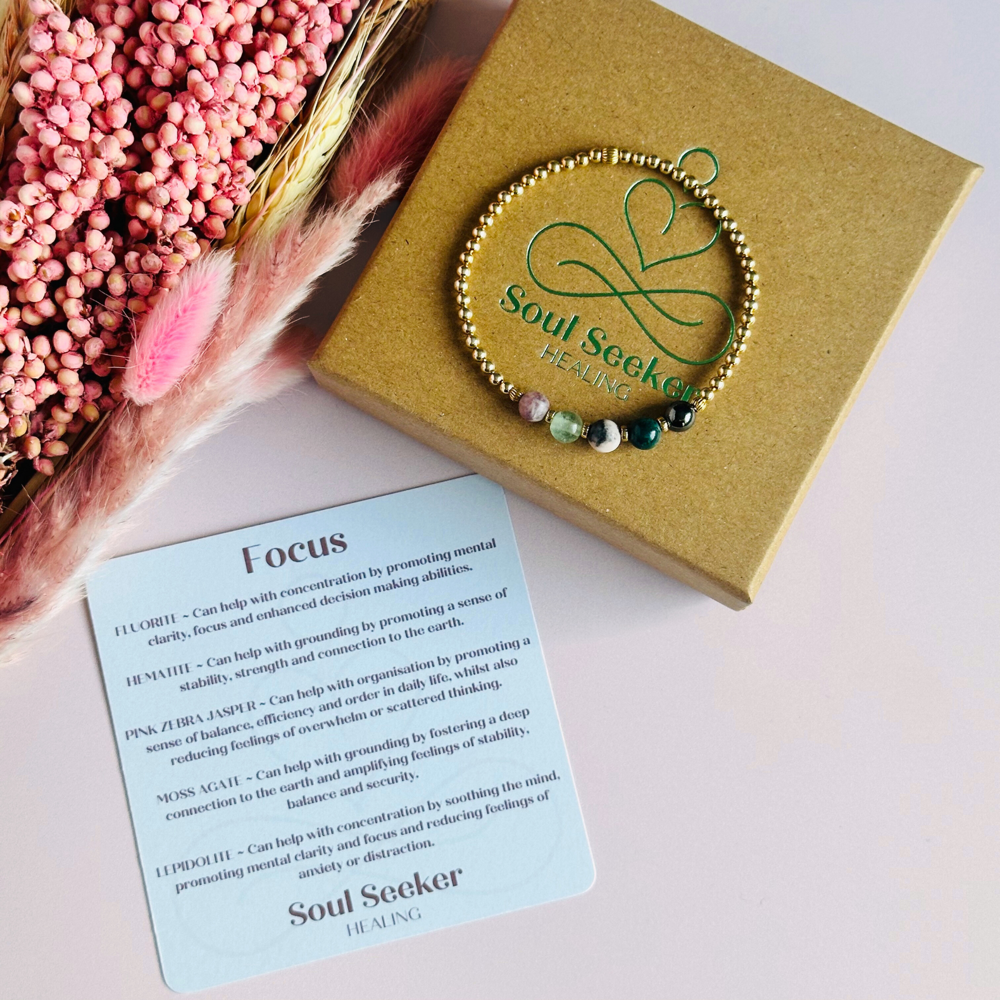 Presented in an eco friendly gift box and includes a card explaining the healing properties of the crystals and a guide on cleansing and charging your crystal jewellery.