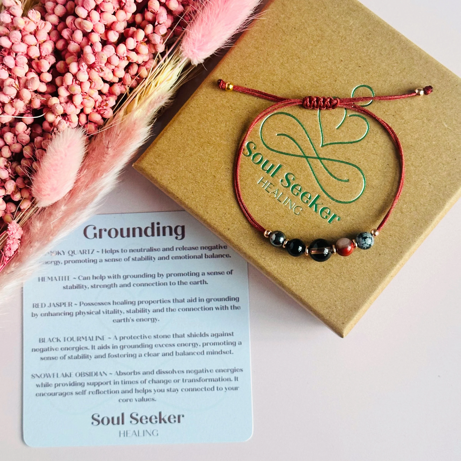 This grounding bracelet is made with a selection of five healing crystals all believed to help keep you grounded. This grounding collection includes: