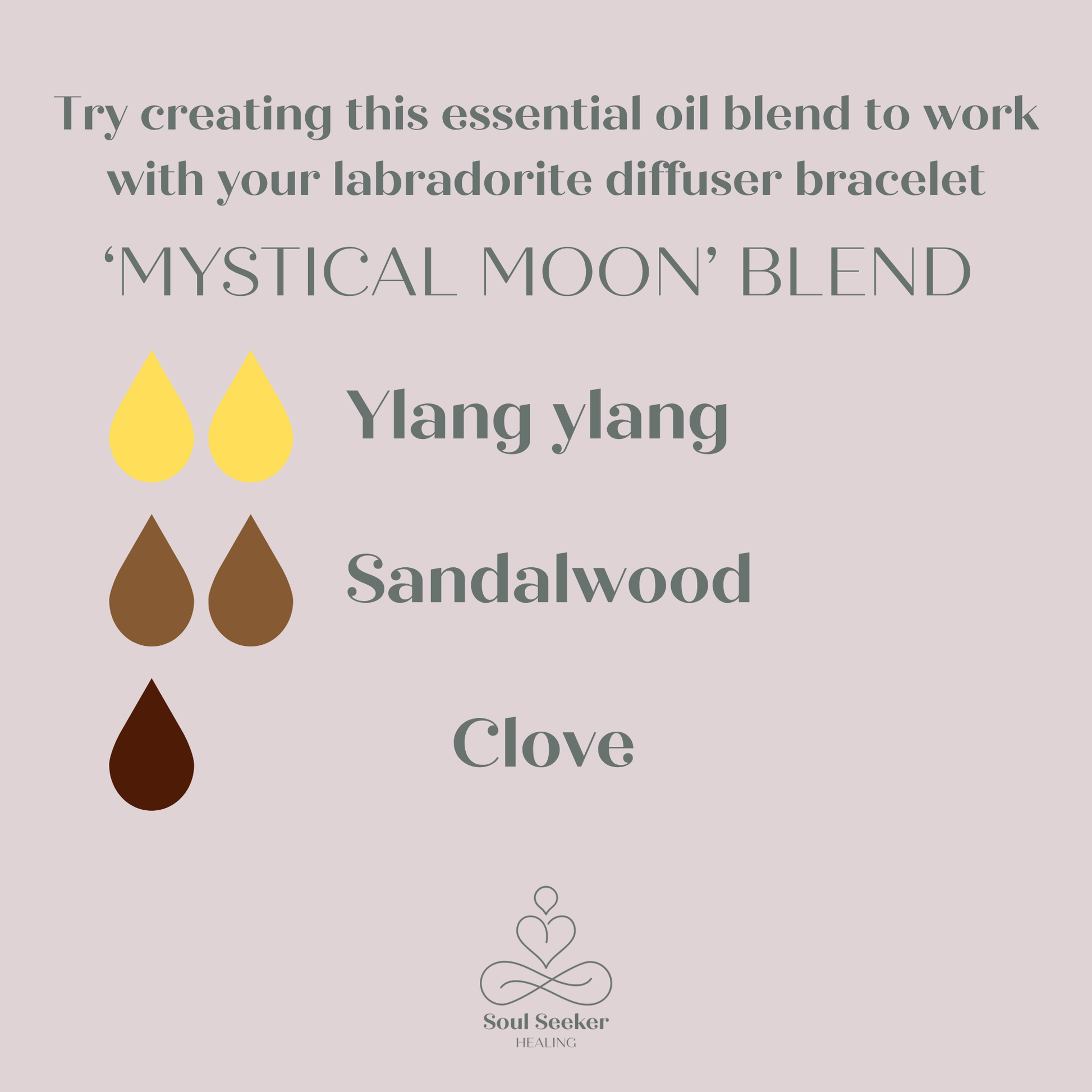 This labradorite essential oil diffuser bracelet features 8mm frosted labradorite beads and star cut labradorite crystal beads, with raw rosewood beads to diffuse essential oils. choose from gold vermeil (pictured), rose gold vermeil or sterling silver accent beads.