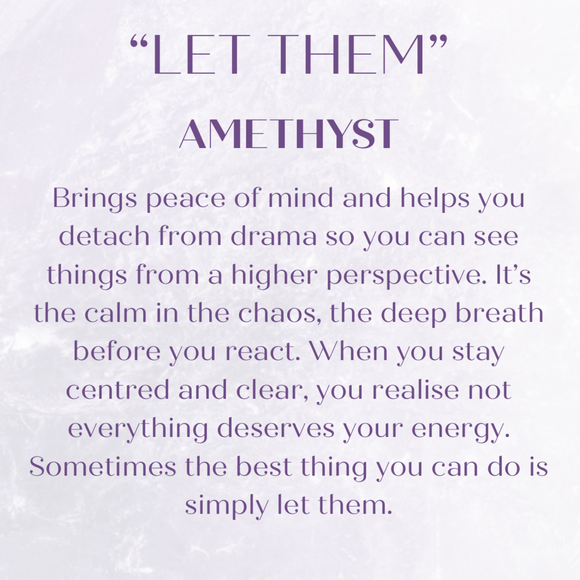 Amethyst brings peace of mind and helps you detach from drama so you can see things from a higher perspective. It’s the calm in the chaos, the deep breath before you react. When you stay centred and clear, you realise not everything deserves your energy. Sometimes the best thing you can do is simply let them.