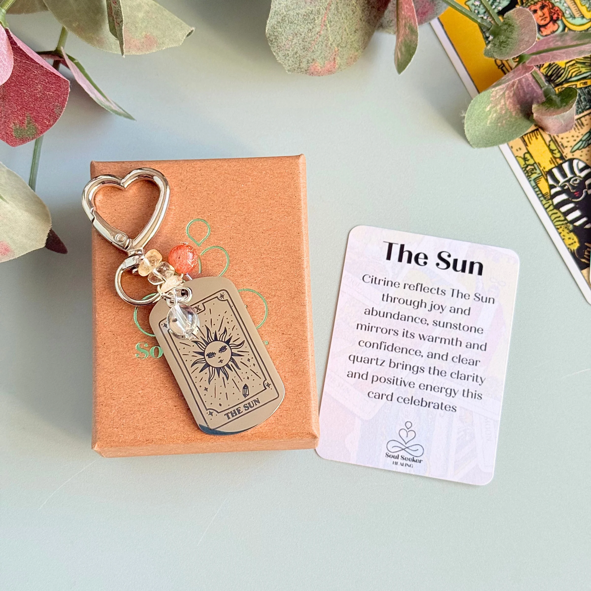 Finished with a sturdy heart shaped lobster clasp and presented in an eco-friendly gift box, it makes a thoughtful gift for tarot lovers, spiritual souls, or anyone who could use a little sunshine in their pocket.